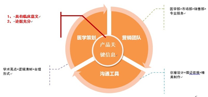 产品的概念是需要传递的,传播的环节越多、传播的路径越长,信息流失也就越多。学术推广无疑获取高保真信息的最直接、有效的途径。同时通过对竞争产品的分析,可以得出自身产品的竞争优势和市场机会,还要对学术证据进行结构化处理,形成完整的逻辑关系,做出清晰的产品定位,进而打动专业的目标医生。